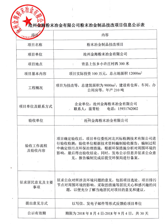 滄州金海粉末冶金有限公司主營:粉末冶金、粉末冶金制品、銅基粉末冶金制品、合金制品。